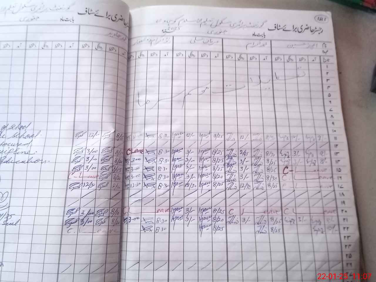 | CNIC | Full Name | Designation | R/C | Absence During Last Calender Month |