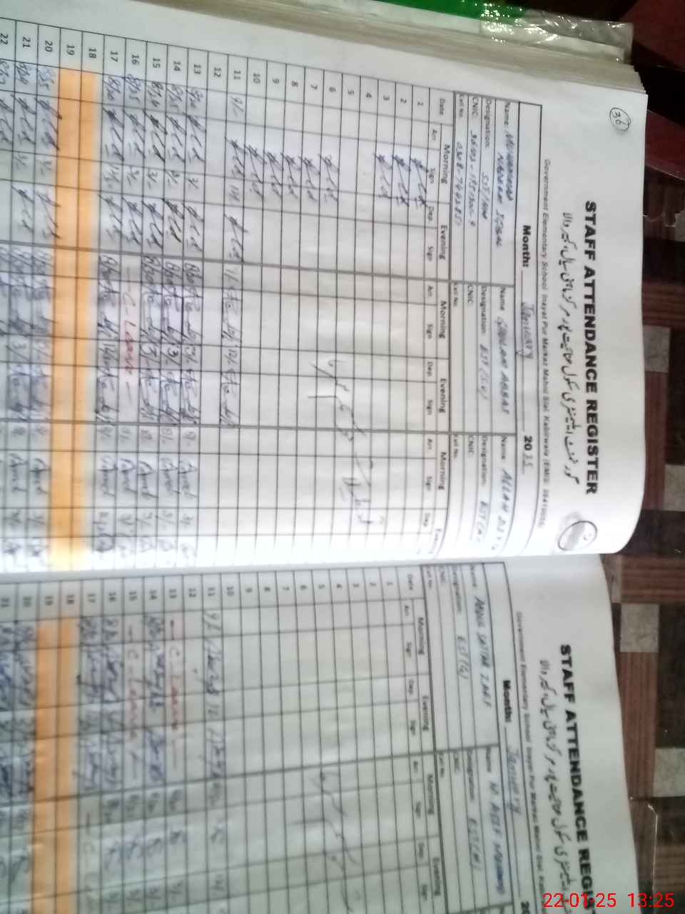 | CNIC | Full Name | Designation | R/C | Absence During Last Calender Month |