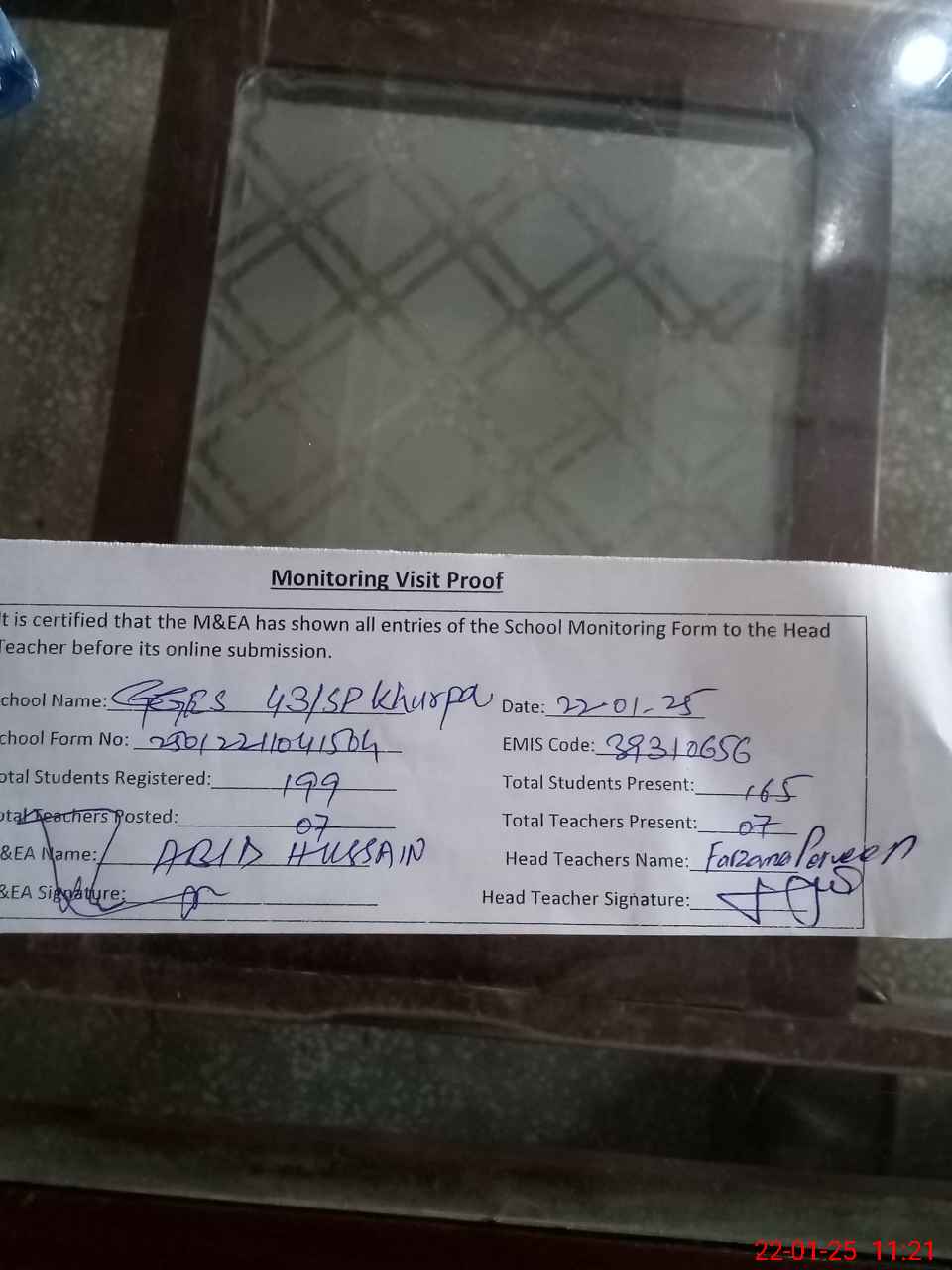 | Attendance Register | Head Teacher | MEA with School | Visit Proof |