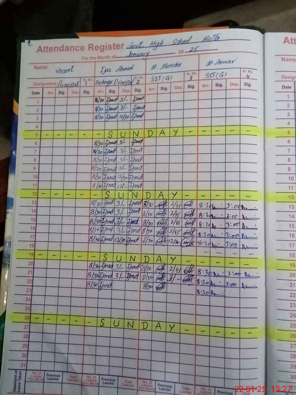 | Name: IJ**** AH**** Designation: (School Headmaster's/Headmistress's) SST SC (INCHARGE ) Phone/Cell Number: 03**** |