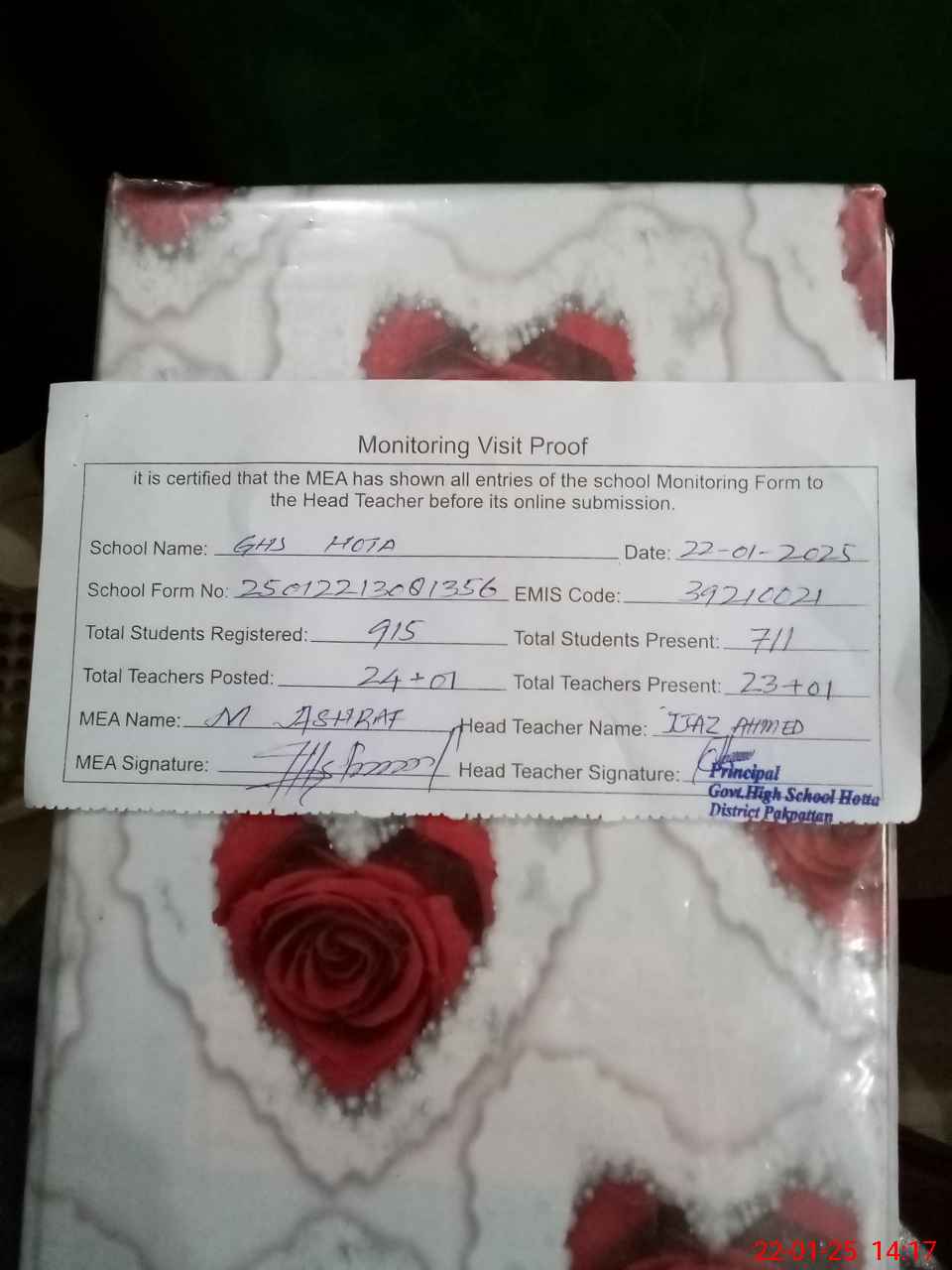 | EMIS Code: 39210021 | Name of School: GHS HOTTA | |||