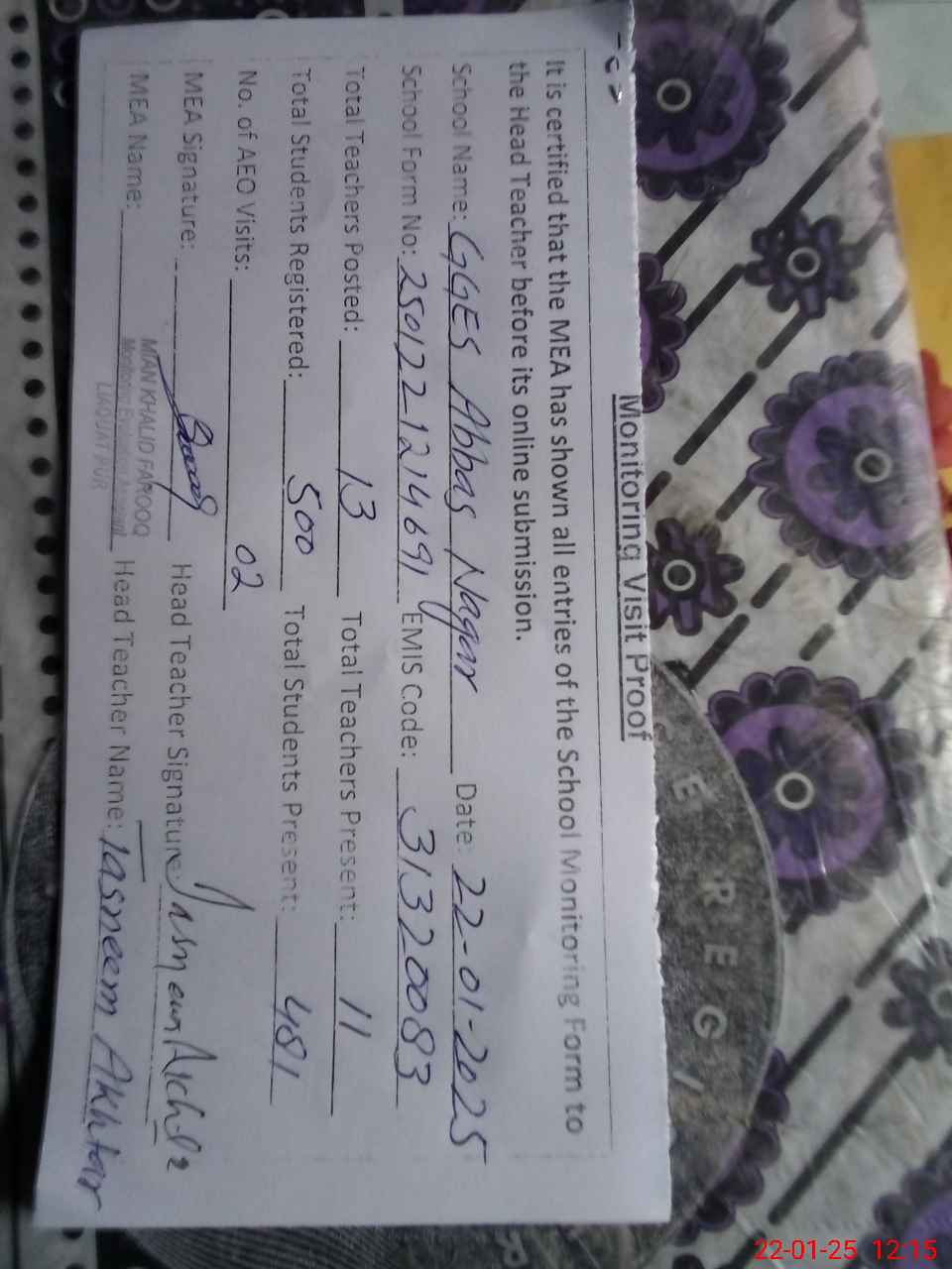| EMIS Code: 31320083 | Name of School: GGES ABBAS NAGAR | |||