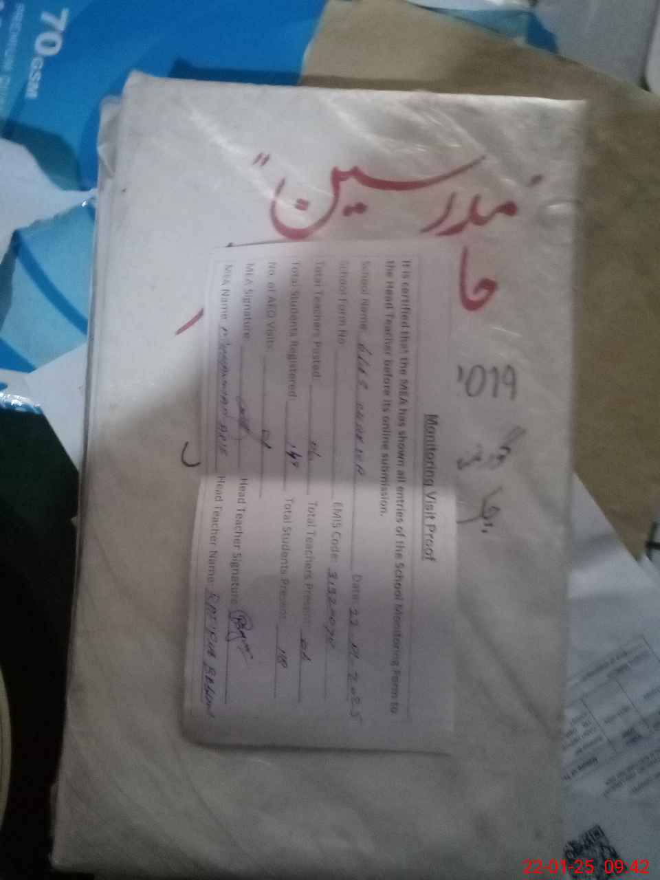 | Attendance Register | Head Teacher | MEA with School | Visit Proof |