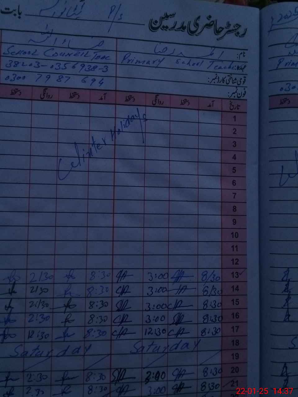 | Name: Zi**** Al**** Designation: (School Headmaster's/Headmistress's) ESE Phone/Cell Number: 03**** |