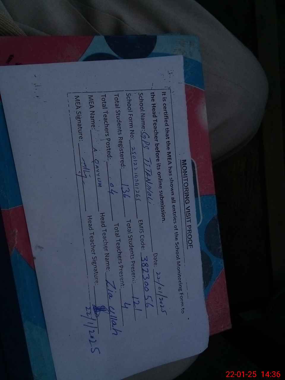 | EMIS Code: 38230056 | Name of School: GPS TITIAN WALI | |||