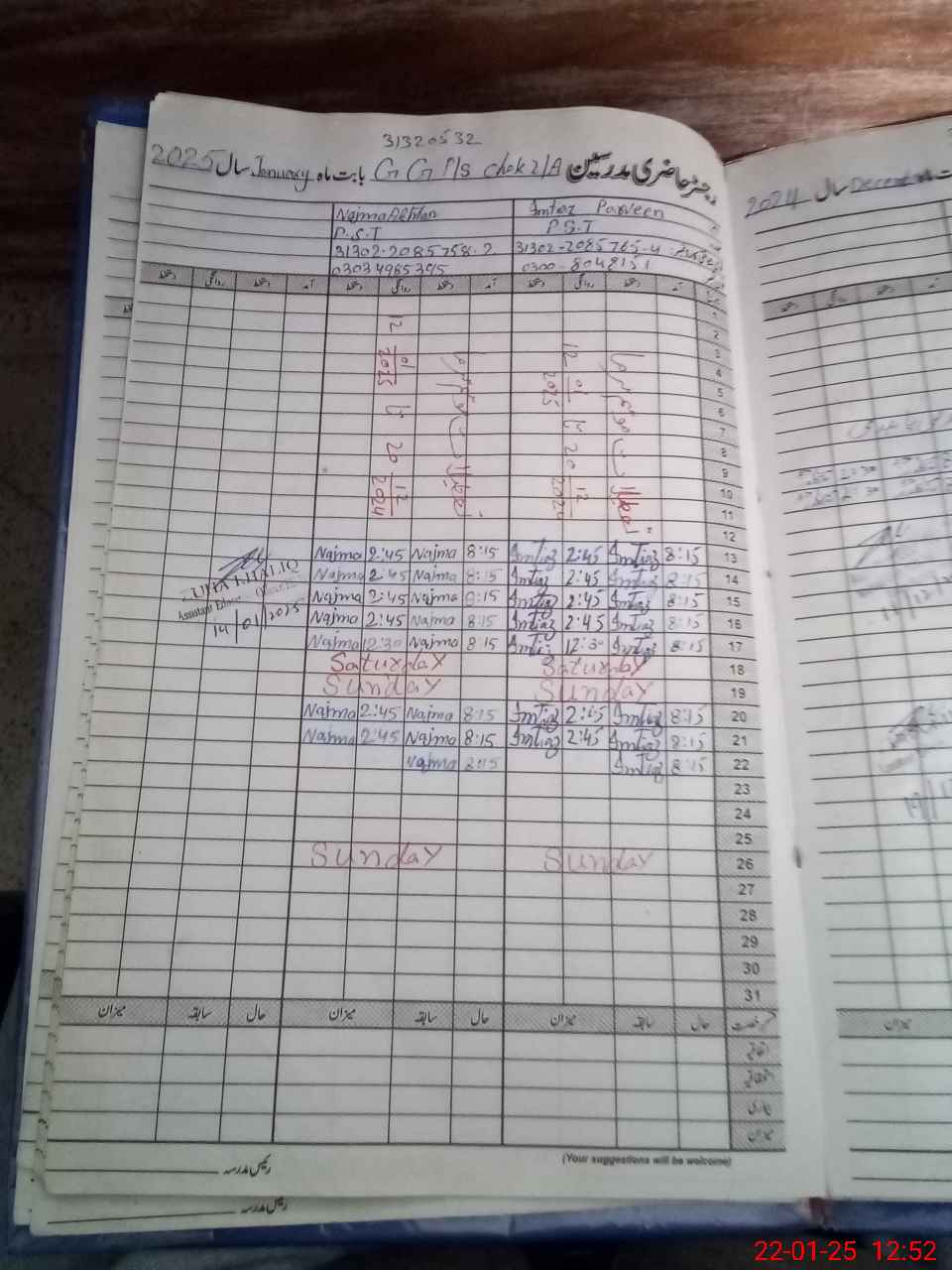 | CNIC | Full Name | Designation | R/C | Absence During Last Calender Month |