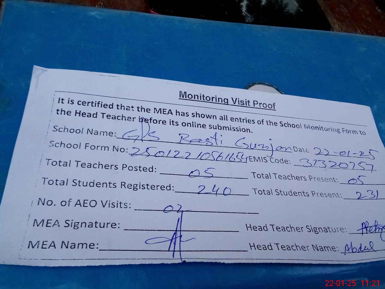 | EMIS Code: 31320757 | Name of School: GPS BASTI GUNJAN | |||