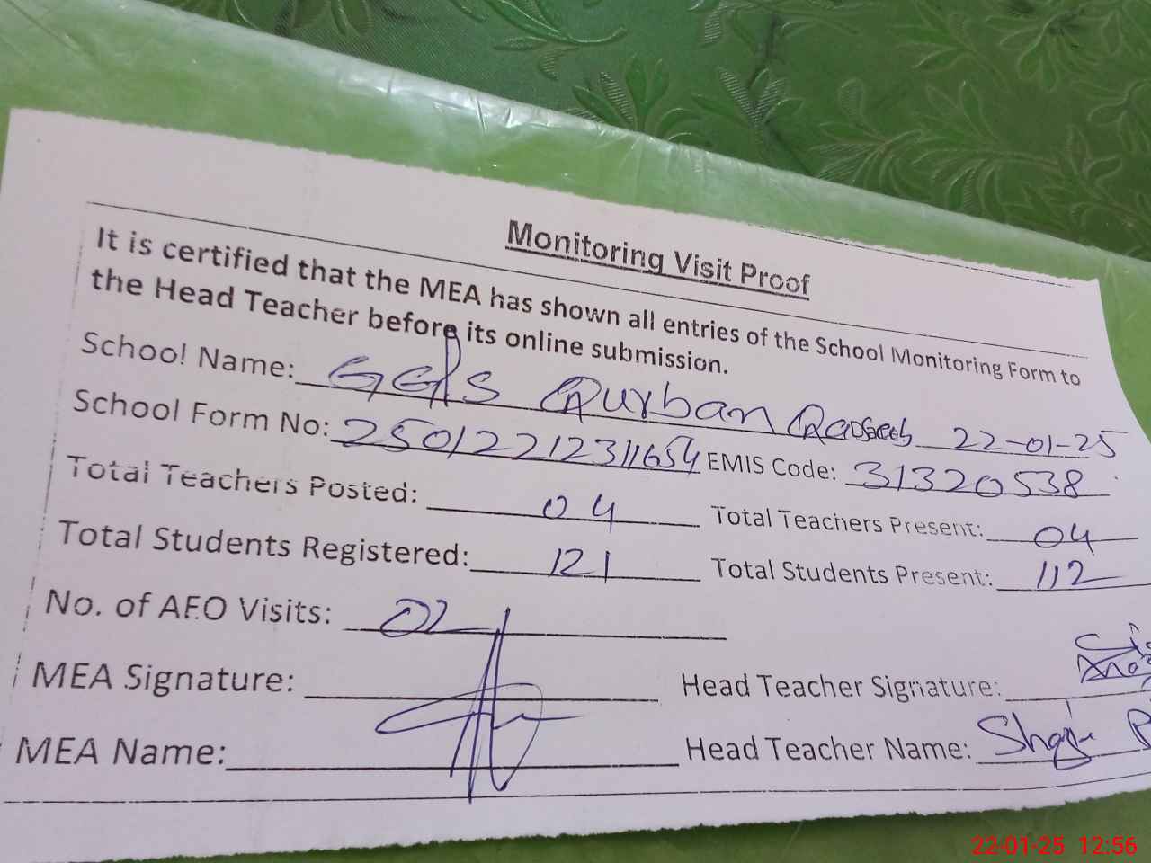 | EMIS Code: 31320538 | Name of School: GGPS BASTI QURBAN QASAB | |||