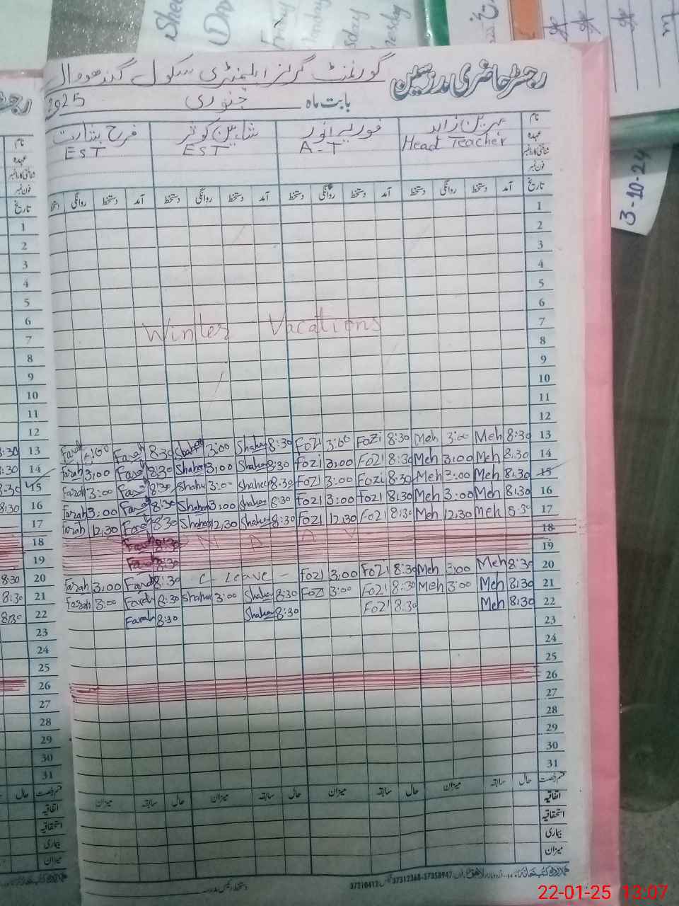 | CNIC | Full Name | Designation | R/C | Absence During Last Calender Month |