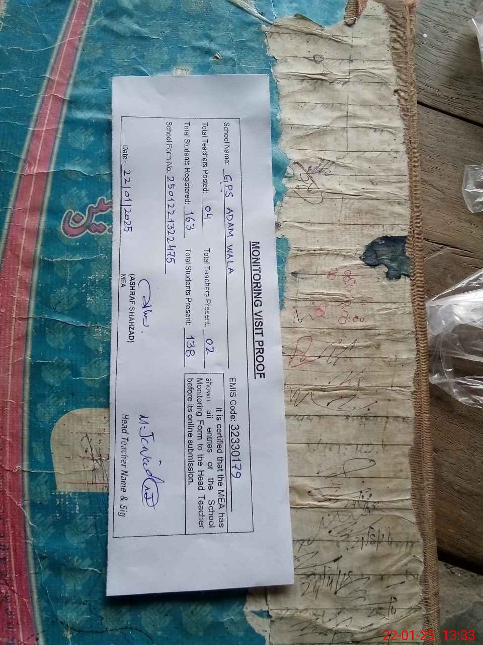 | Attendance Register | Head Teacher | MEA with School | Visit Proof |