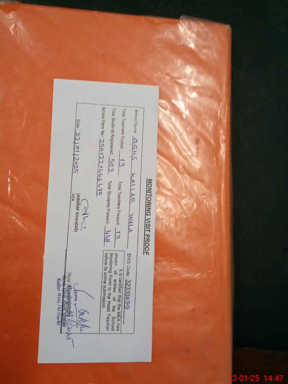| EMIS Code: 32330099 | Name of School: GGHS KALLAR WALA | |||