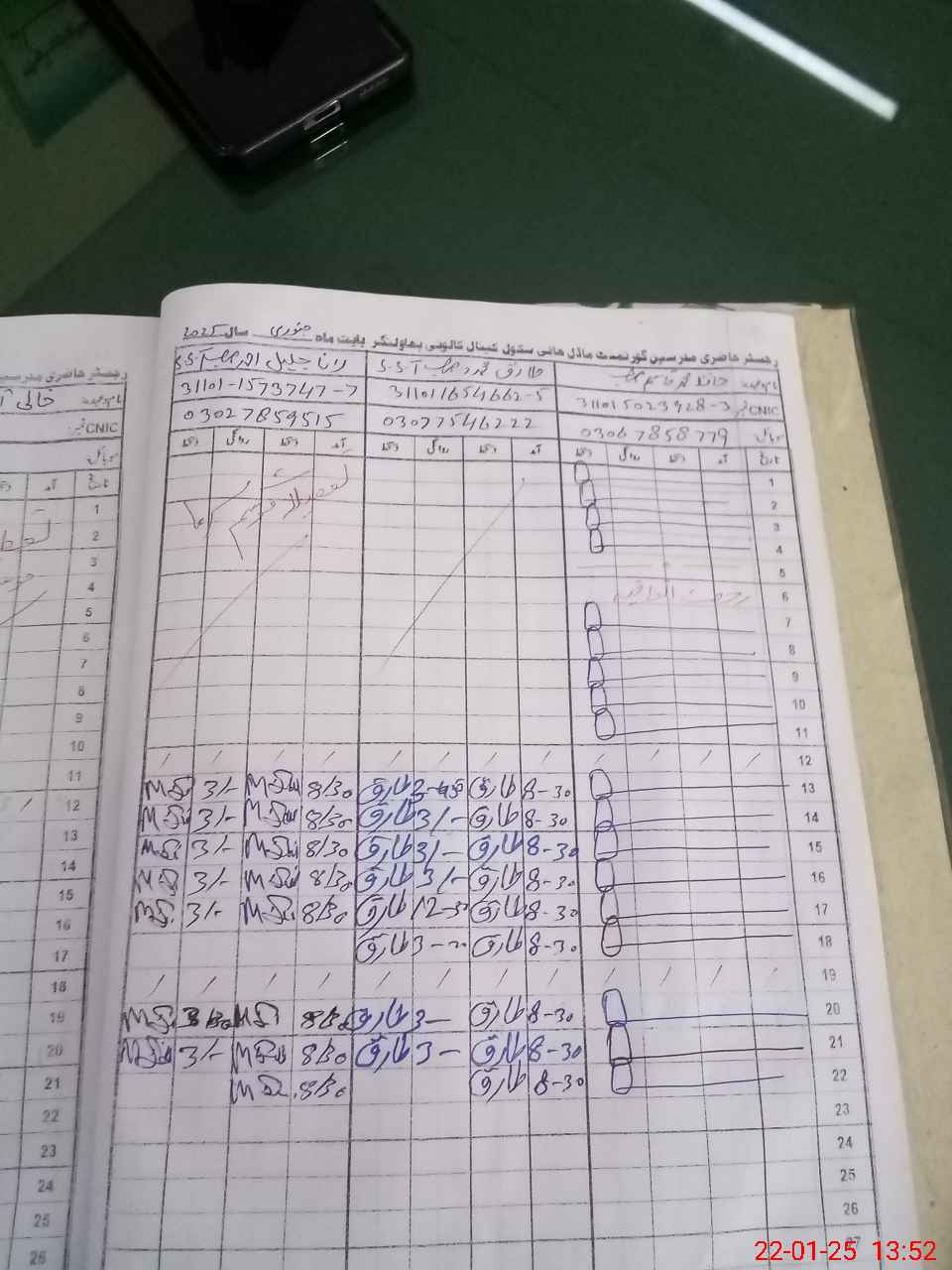 | CNIC | Full Name | Designation | R/C | Absence during last cal. month |