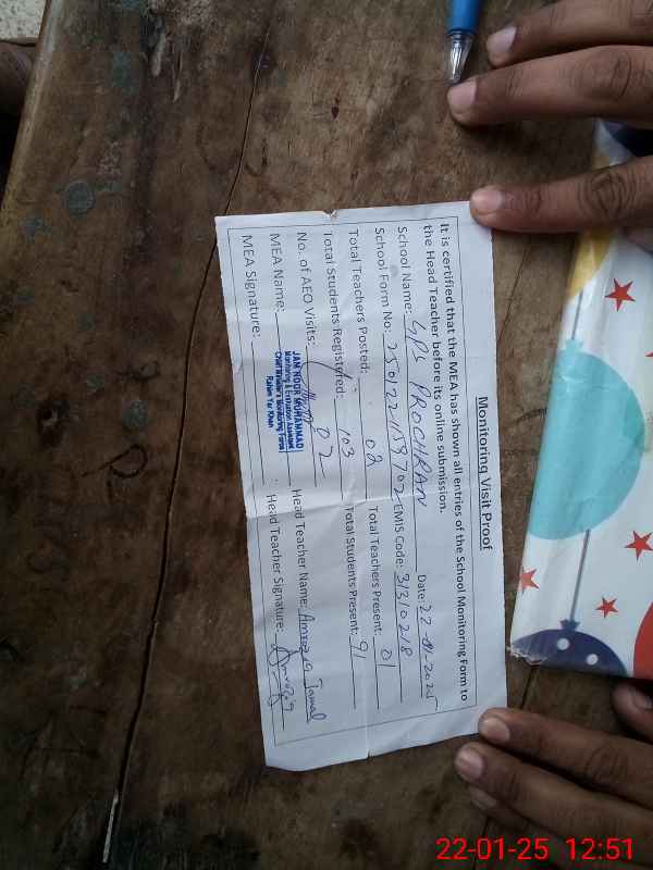 | EMIS Code: 31310218 | Name of School: GPS PROCHRAN (After Noon) | |||