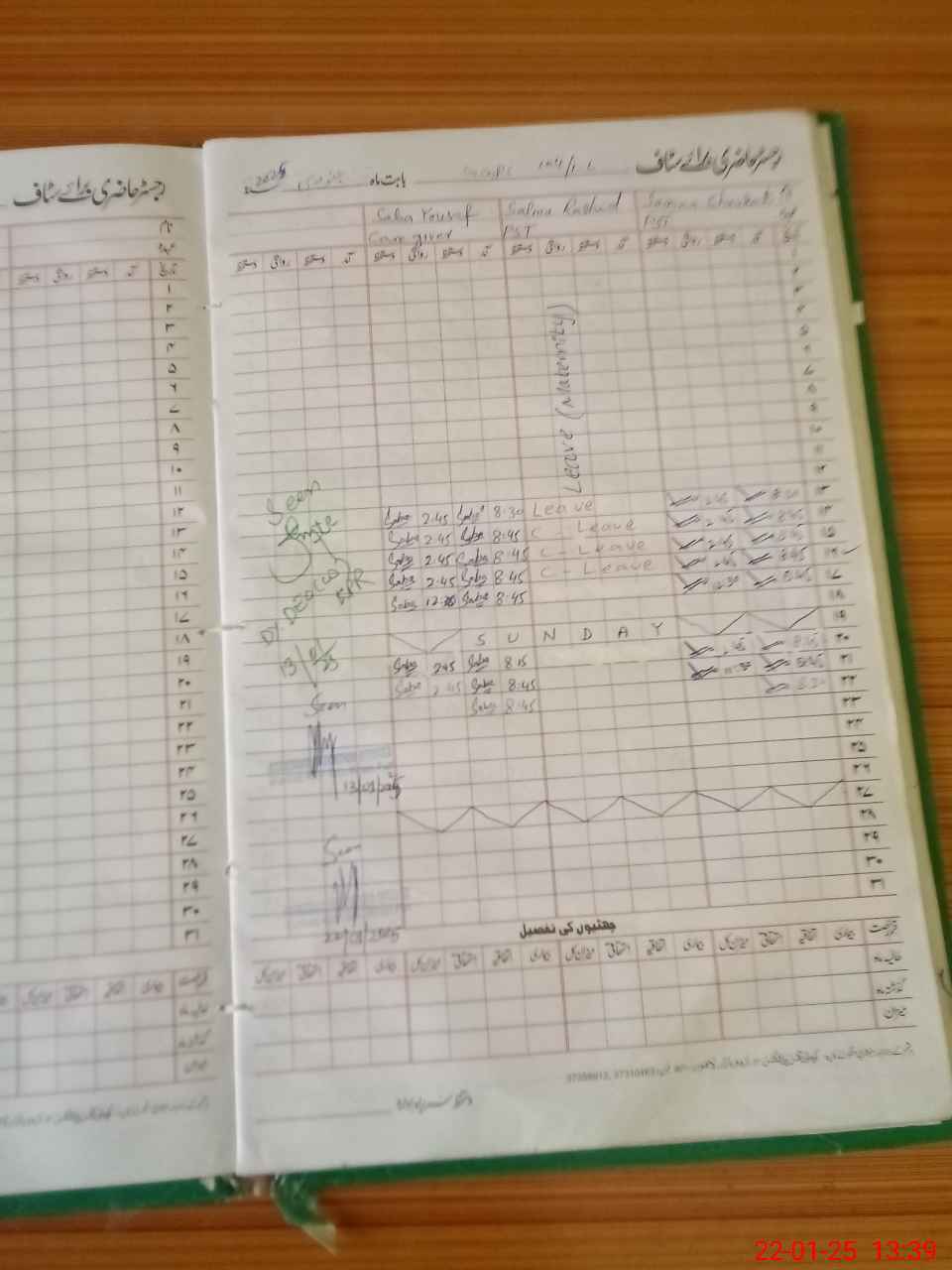 | 31**** | Sa**** Ra**** | 2 | 2 | 0 | 0 | 0 | 0 | 0 | 0 | 0 | 0 | 0 | Maternity |