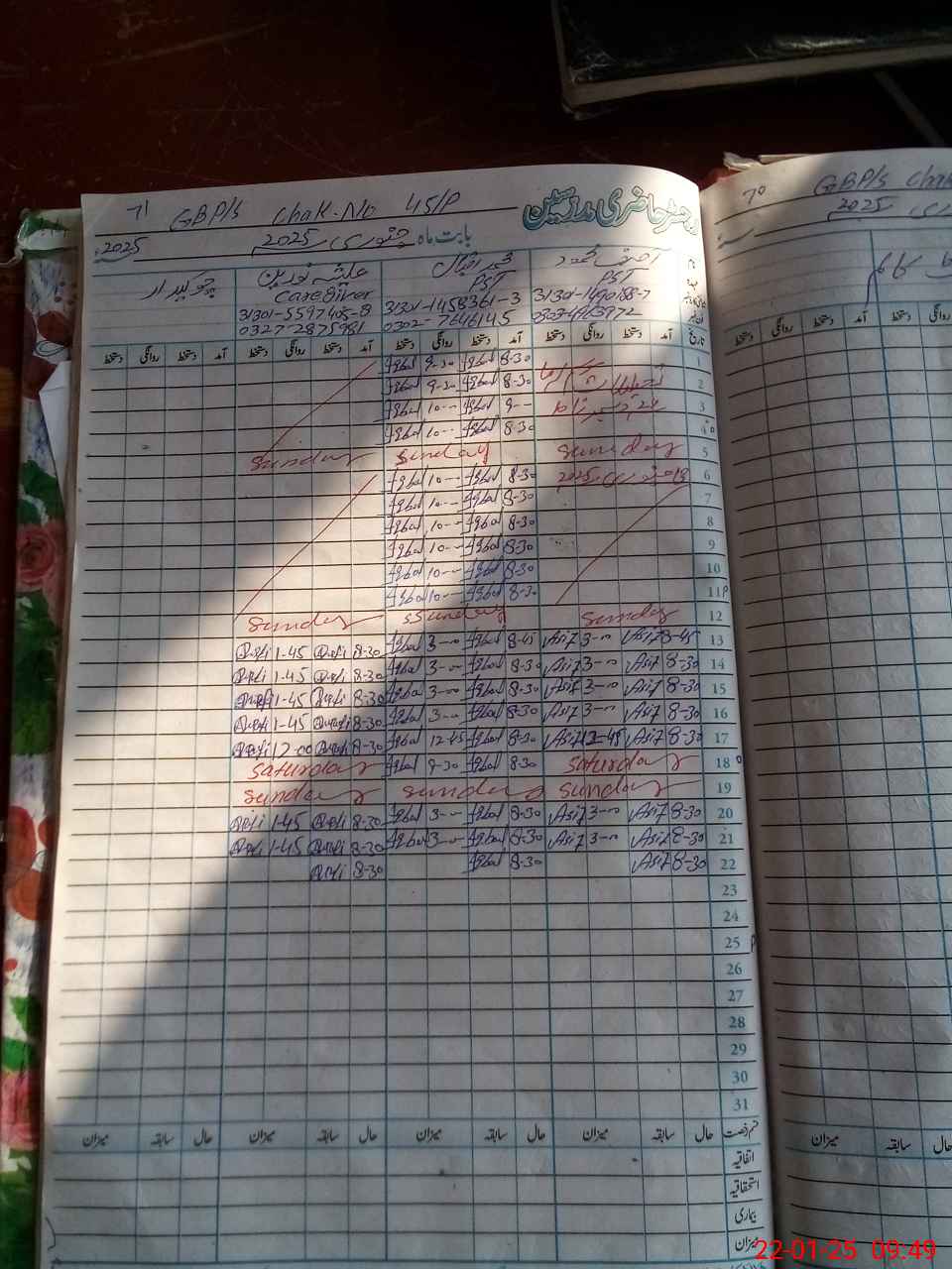 | CNIC | Full Name | Designation | R/C | Absence during last cal. month |