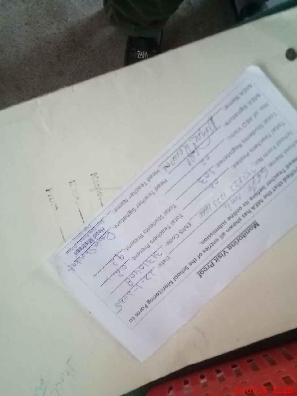 | Attendance Register | Head Teacher | MEA with School | Visit Proof |
