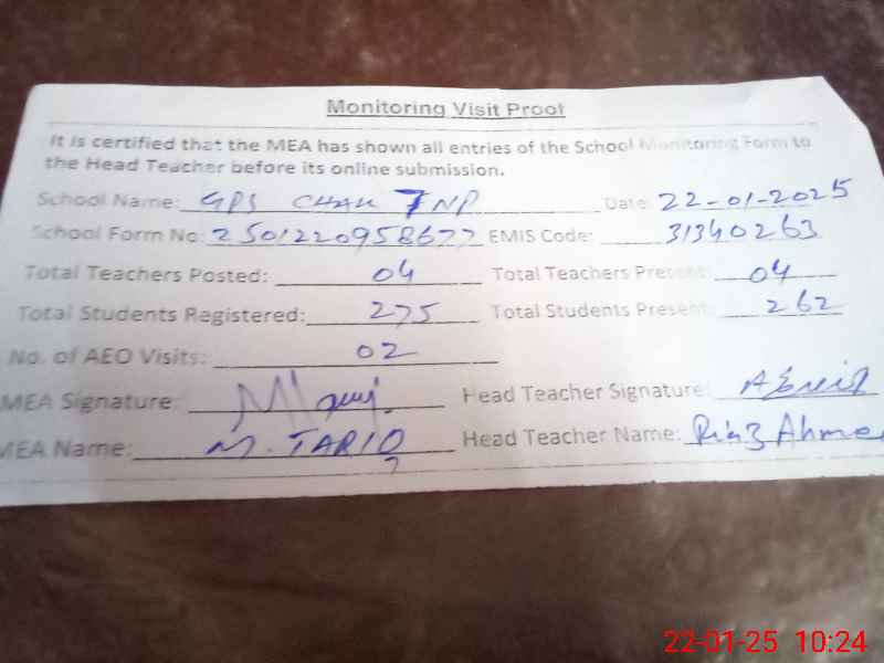 | EMIS Code: 31340263 | Name of School: GPS CHAK NO 7/NP | |||