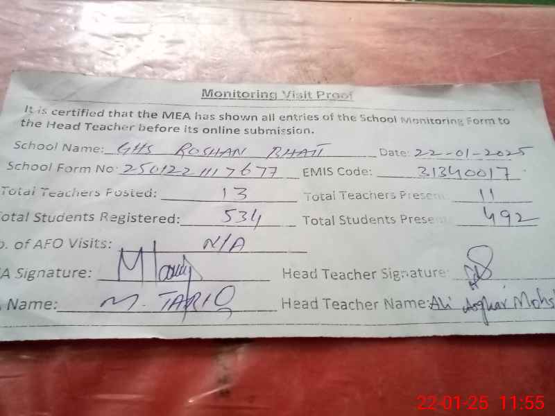 | EMIS Code: 31340017 | Name of School: GHS ROSHAN BHAIT | |||