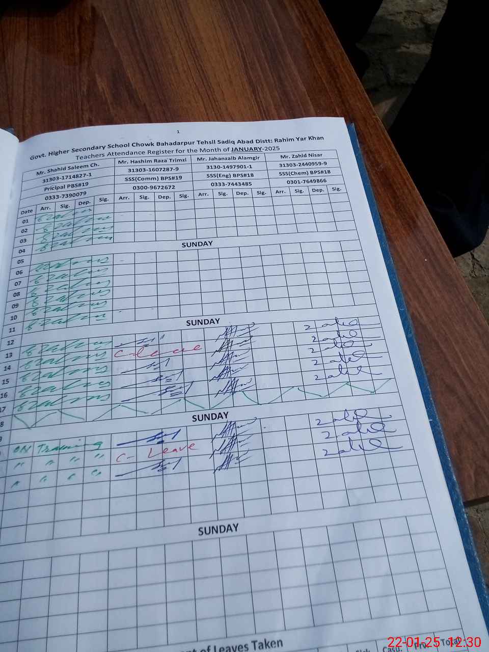 | Name: Sh**** Sa**** Ch Designation: (School Headmaster's/Headmistress's) Principal Phone/Cell Number: 03**** |