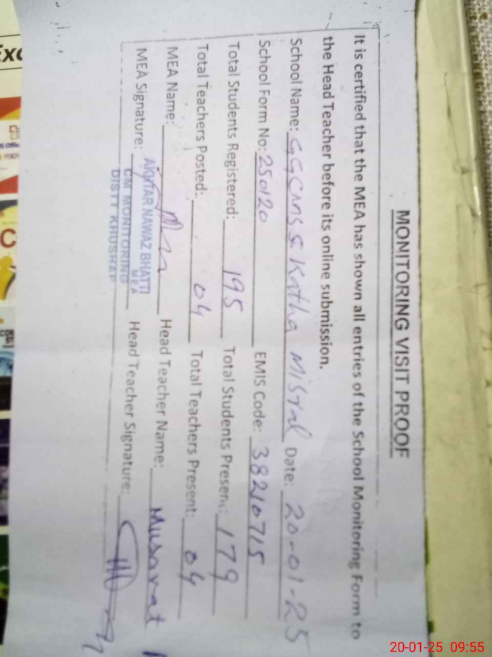 | EMIS Code: 38210715 | Name of School: GGCMS KATHA MISRAL | |||