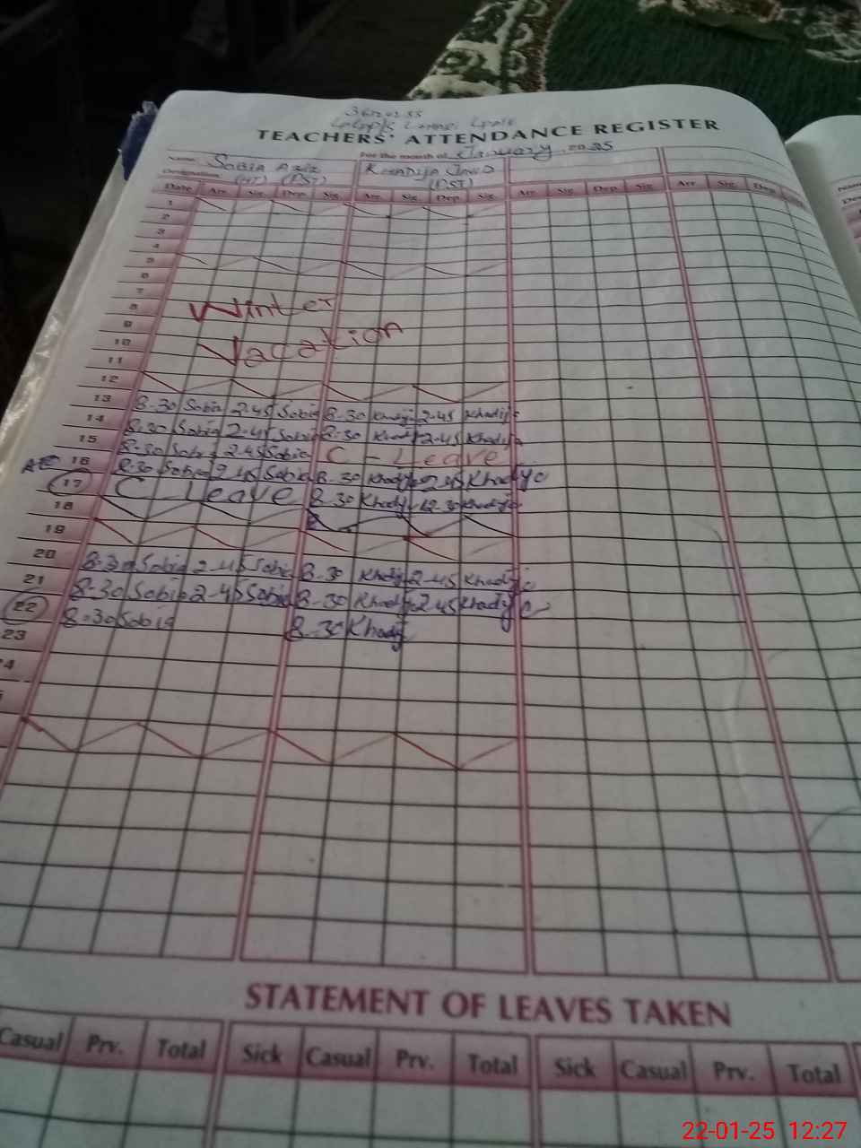 | Leave | Duty | Absent | Maternity | Medical | Ex- Pak |
