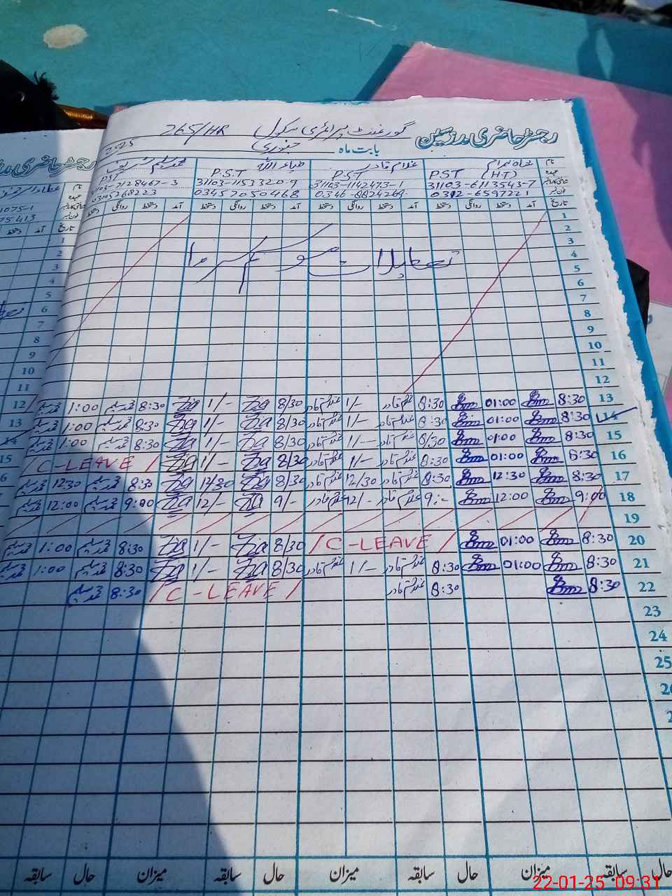 | CNIC | Full Name | Designation | R/C | Absence During Last Calender Month |