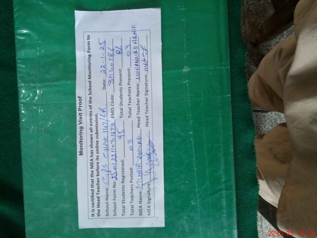 | EMIS Code: 31140186 | Name of School: GPS CHAK NO. 147/6-R | |||