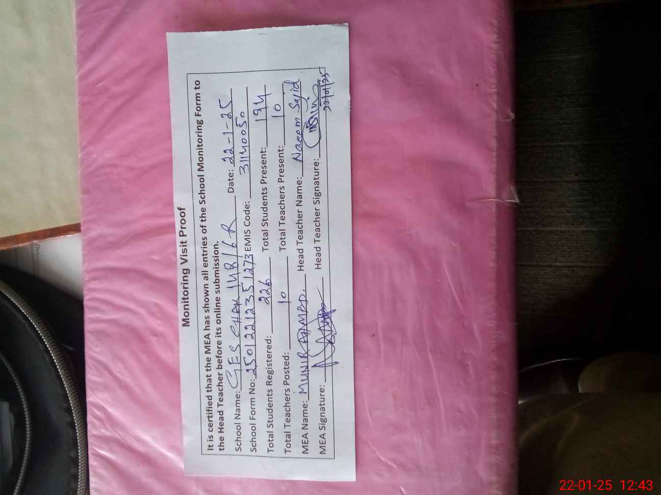| EMIS Code: 31140050 | Name of School: GES CHAK NO. 148/6-R | |||