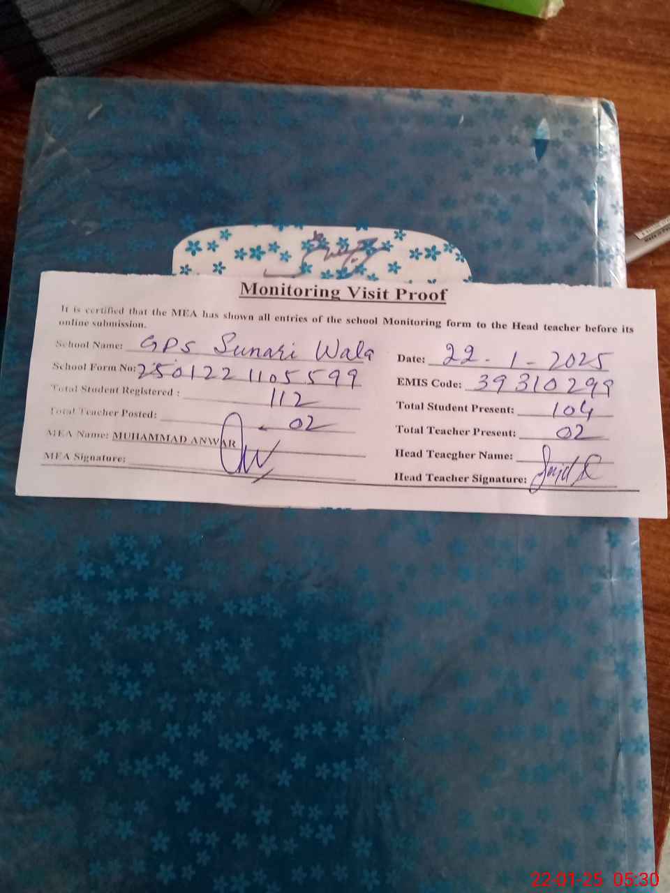| EMIS Code: 39310299 | Name of School: GPS SUNARI WALA | |||