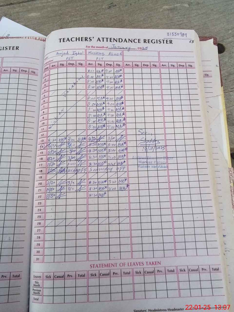 | Name: Mu**** Ah**** Designation: (School Headmaster's/Headmistress's) PST/PTC/JV Phone/Cell Number: 03**** |