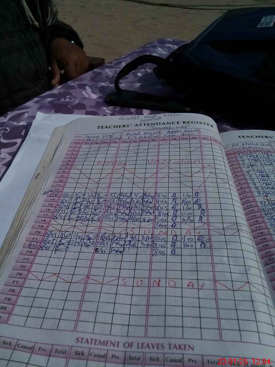 | Leave | Duty | Absent | Maternity | Medical | Ex- Pak |