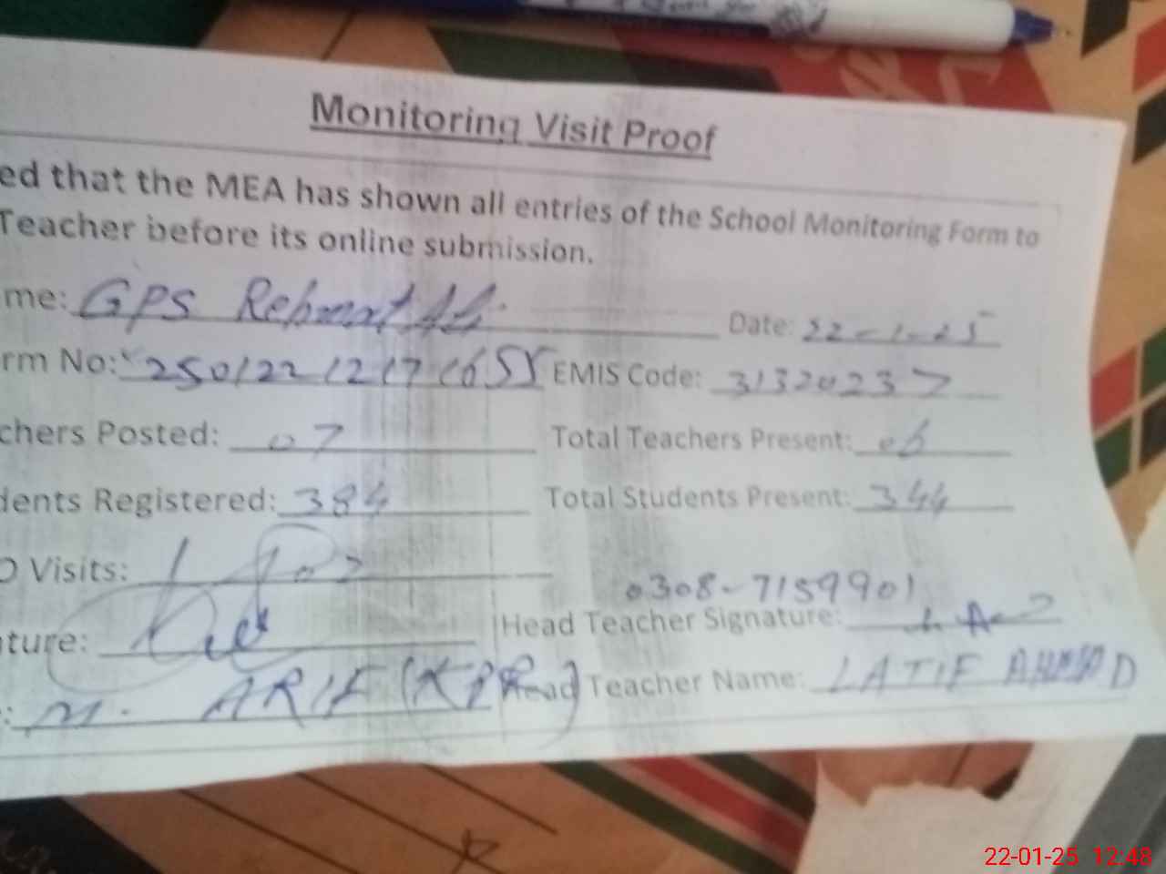 | EMIS Code: 31320237 | Name of School: GPS REHMAT ALI AMIN ABAD | |||