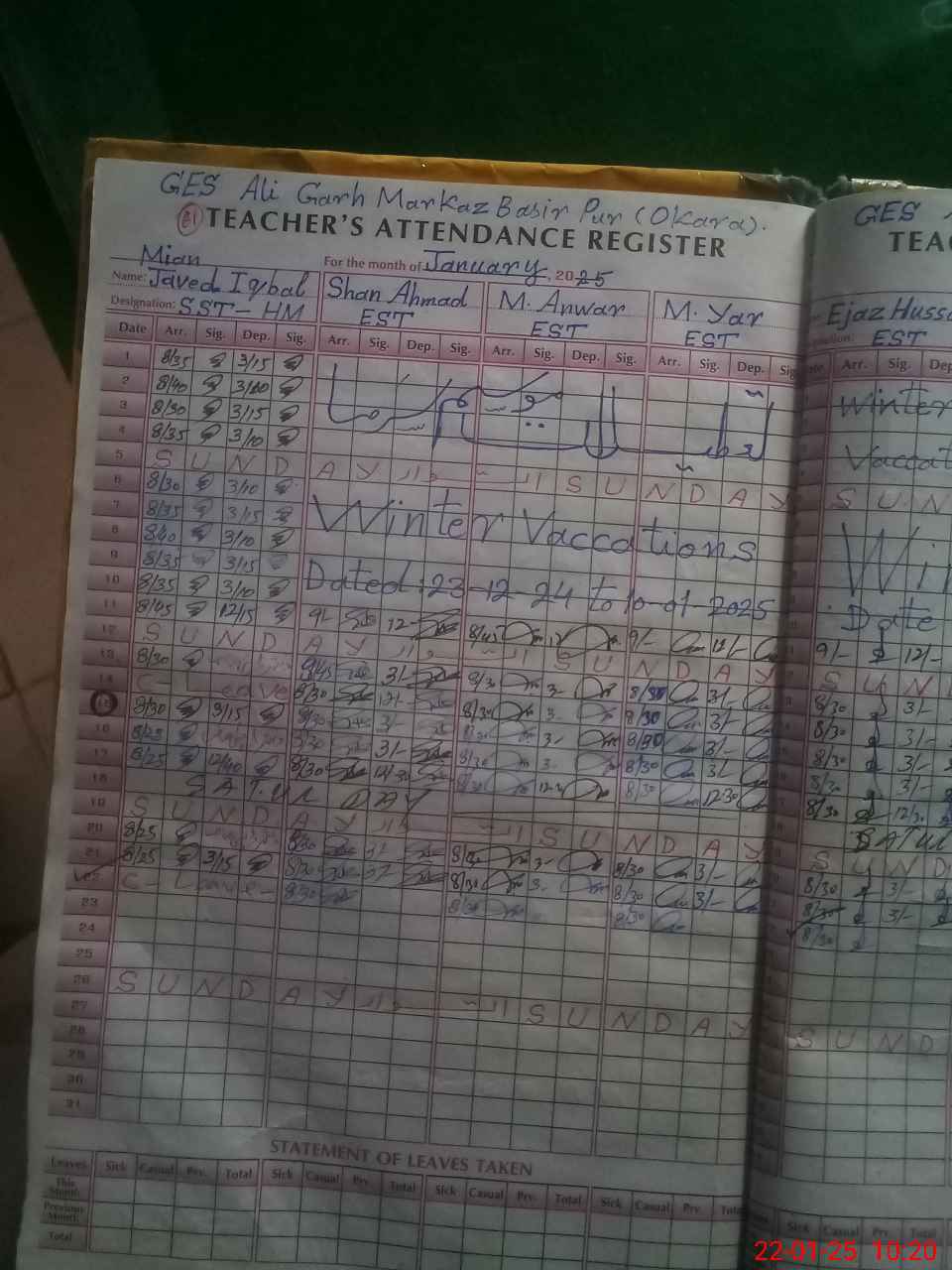 | Remarks (Use Separate Page if Required): Head teacher on leave no record available at school | |||||