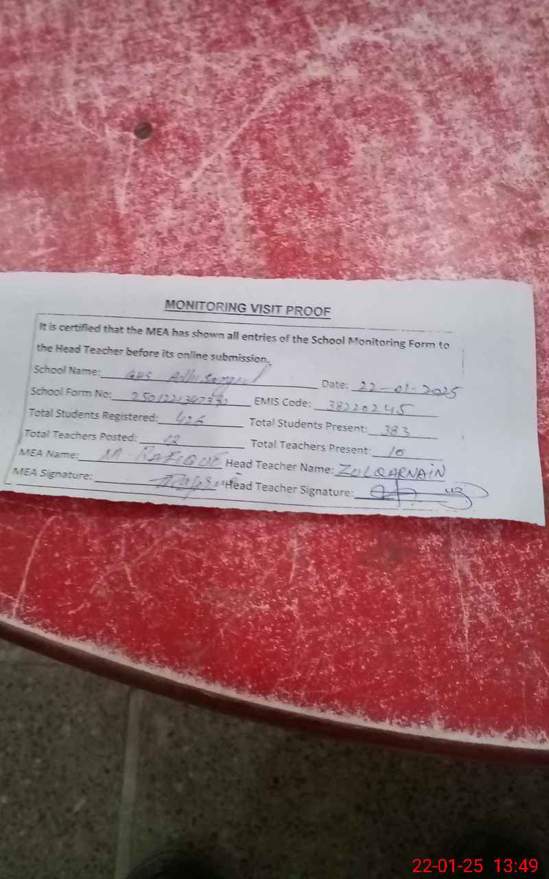 | EMIS Code: 38220245 | Name of School: GHS ADHI SARGAL | |||