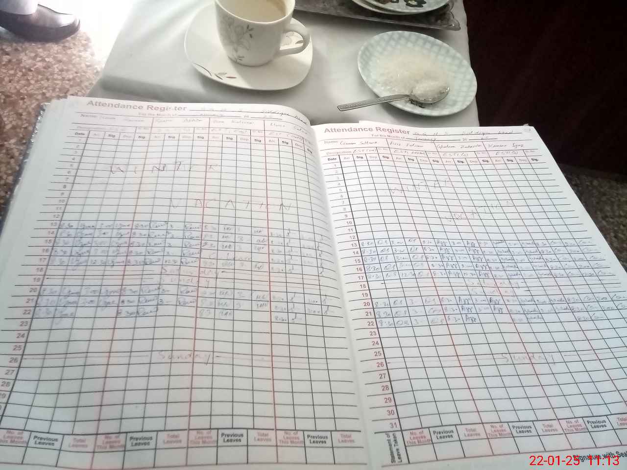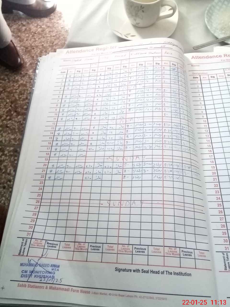 | CNIC | Full Name | Designation | R/C | Absence During Last Calender Month |