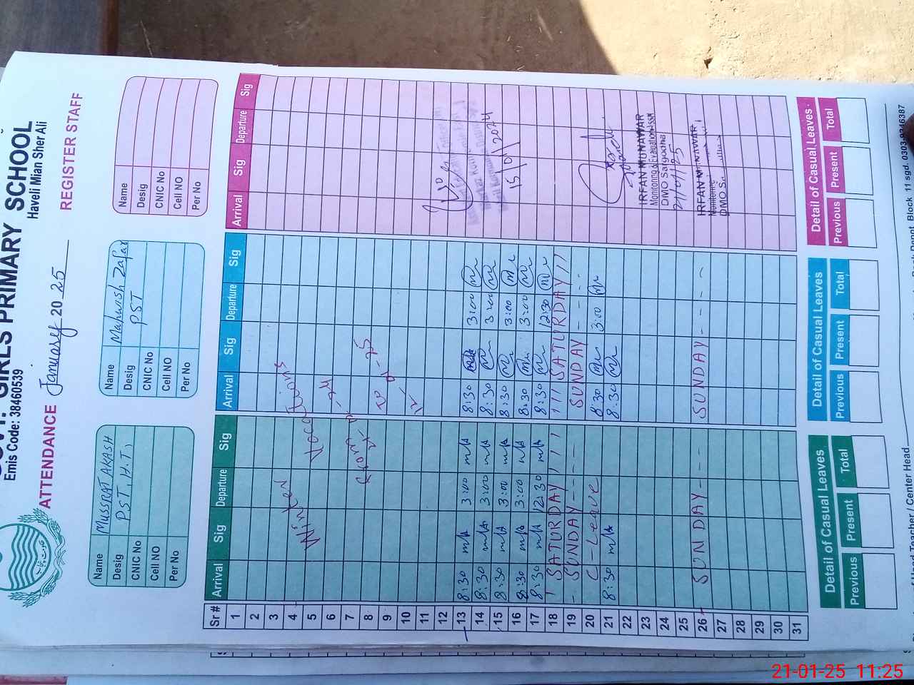 | Name: Mu**** Ak**** Designation: (School Headmaster's/Headmistress's) PST Phone/Cell Number: 03**** |