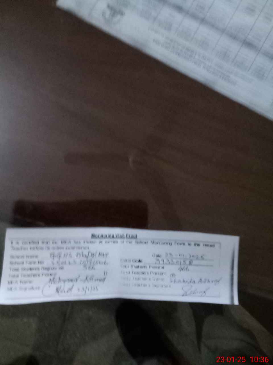 | Attendance Register | Head Teacher | MEA with School | Visit Proof |
