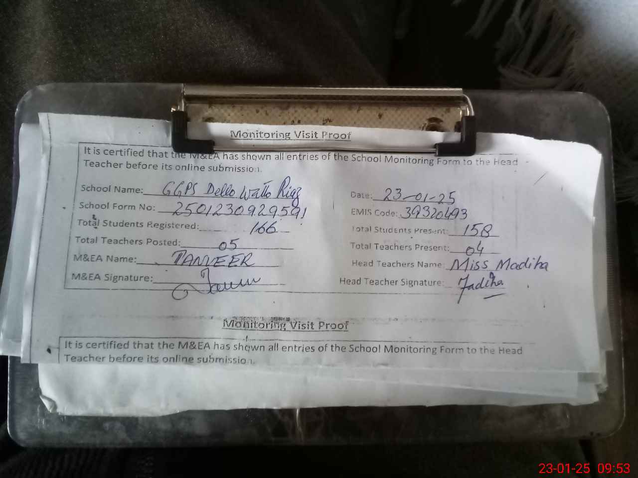 | Attendance Register | Head Teacher | MEA with School | Visit Proof |
