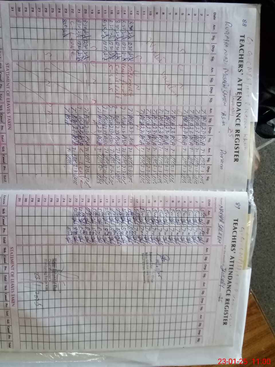 | CNIC | Full Name | Designation | R/C | Absence During Last Calender Month |