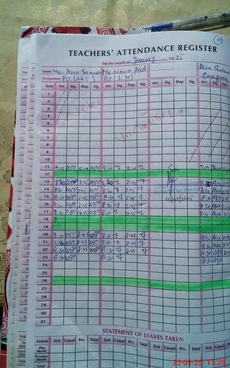 | Name: AZ**** YA**** Designation: (School Headmaster's/Headmistress's) PST Phone/Cell Number: 03**** |