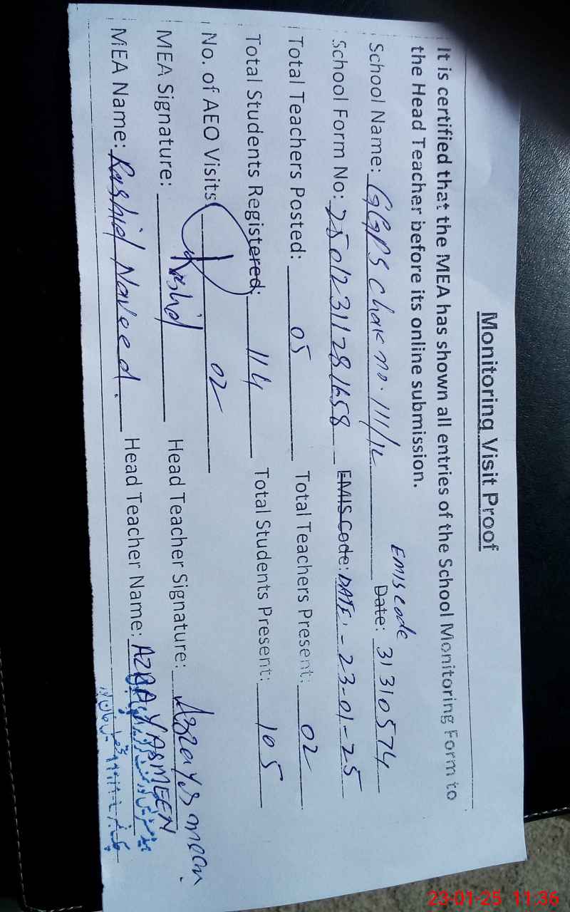 | EMIS Code: 31310574 | Name of School: GGPS CHAK NO.111/1-L | |||