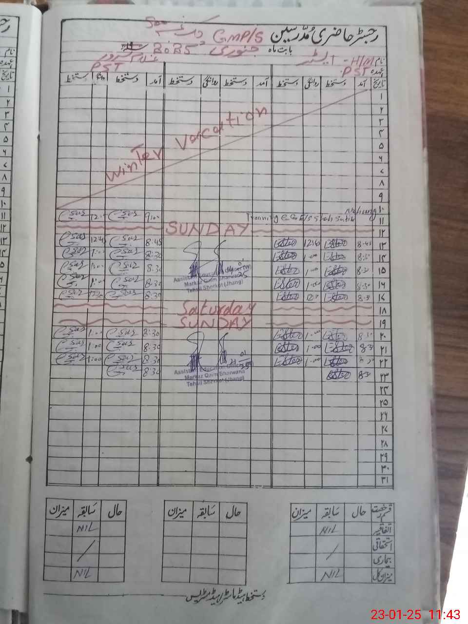 | CNIC | Full Name | Designation | R/C | Absence During Last Calender Month |
