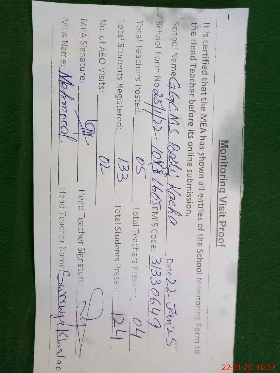 | EMIS Code: 31330649 | Name of School: GGCMS KACHA | |||