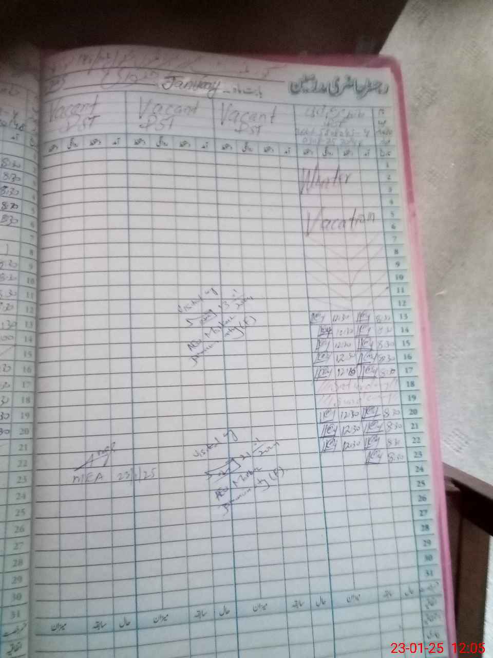| CNIC | Full Name | Designation | R/C | Absence During Last Calender Month |