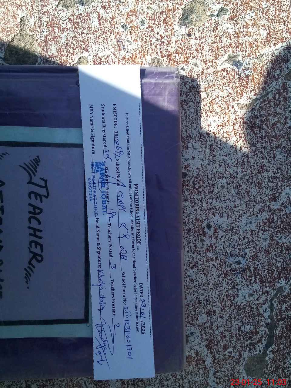 | Attendance Register | Head Teacher | MEA with School | Visit Proof |