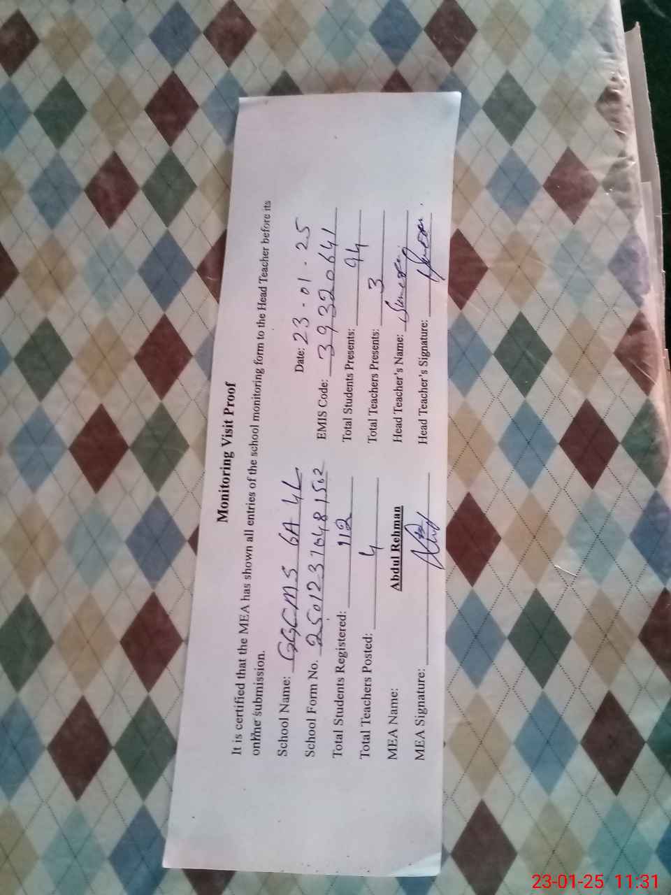 | EMIS Code: 39320641 | Name of School: GGCMS 6-A/4-L | |||