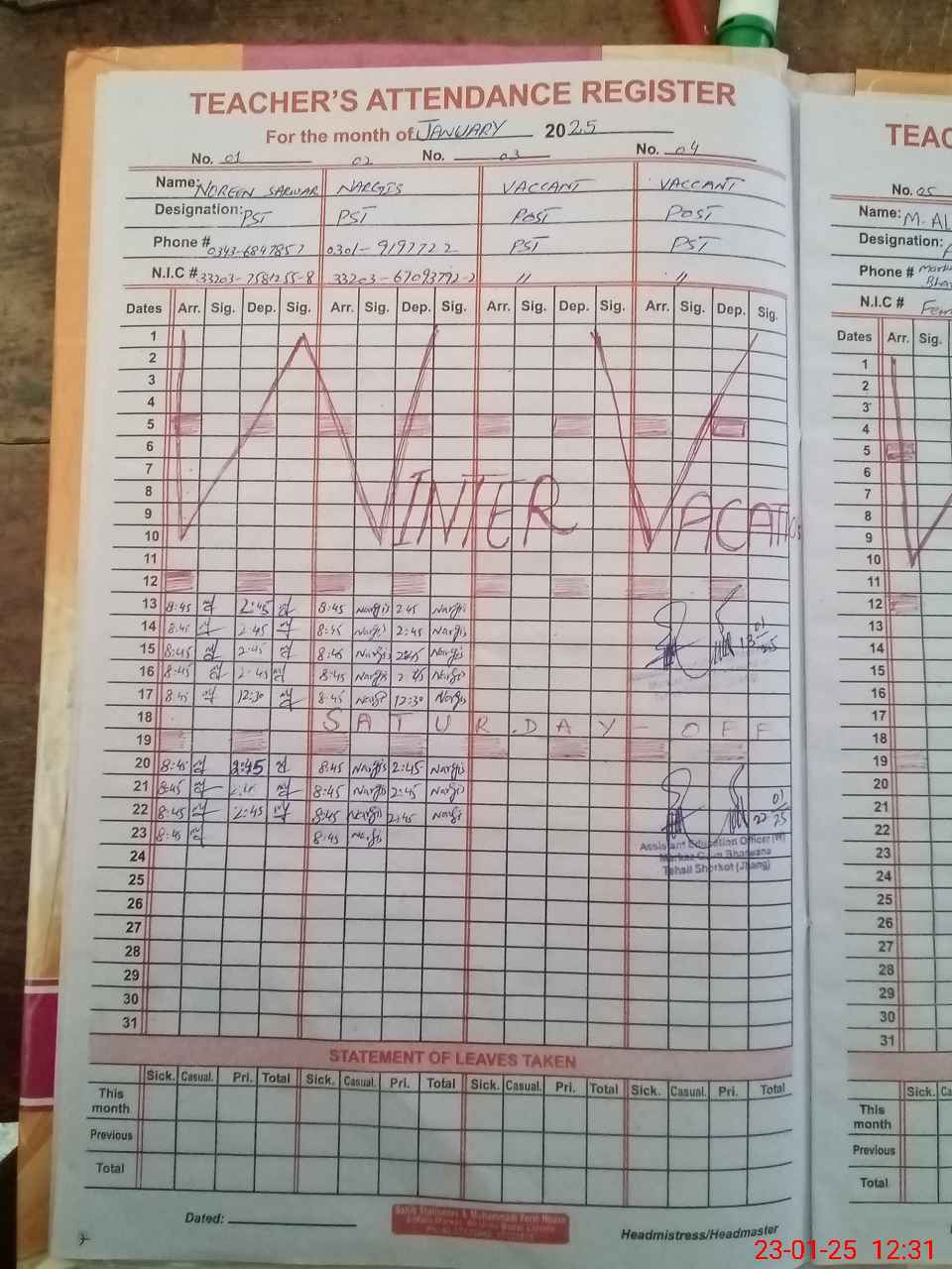 | Remarks (Use Separate Page if Required): Students attendance list not updated accordingly by pmiu two years old list given for attendance where as students left the school | |||||