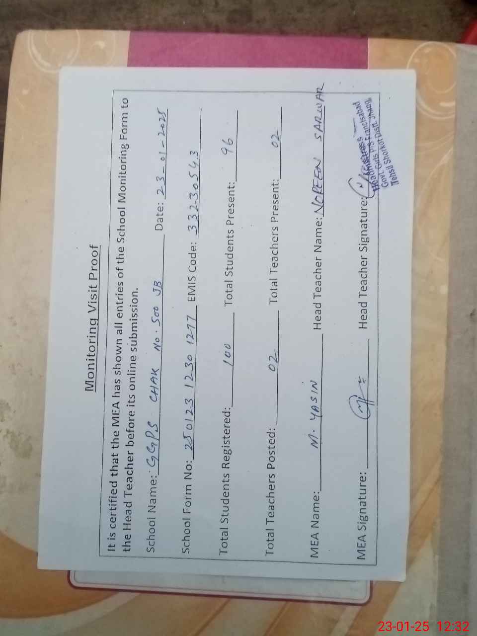 | EMIS Code: 33230543 | Name of School: GGPS CHAK NO 500 JB FRANCIS ABAD | |||