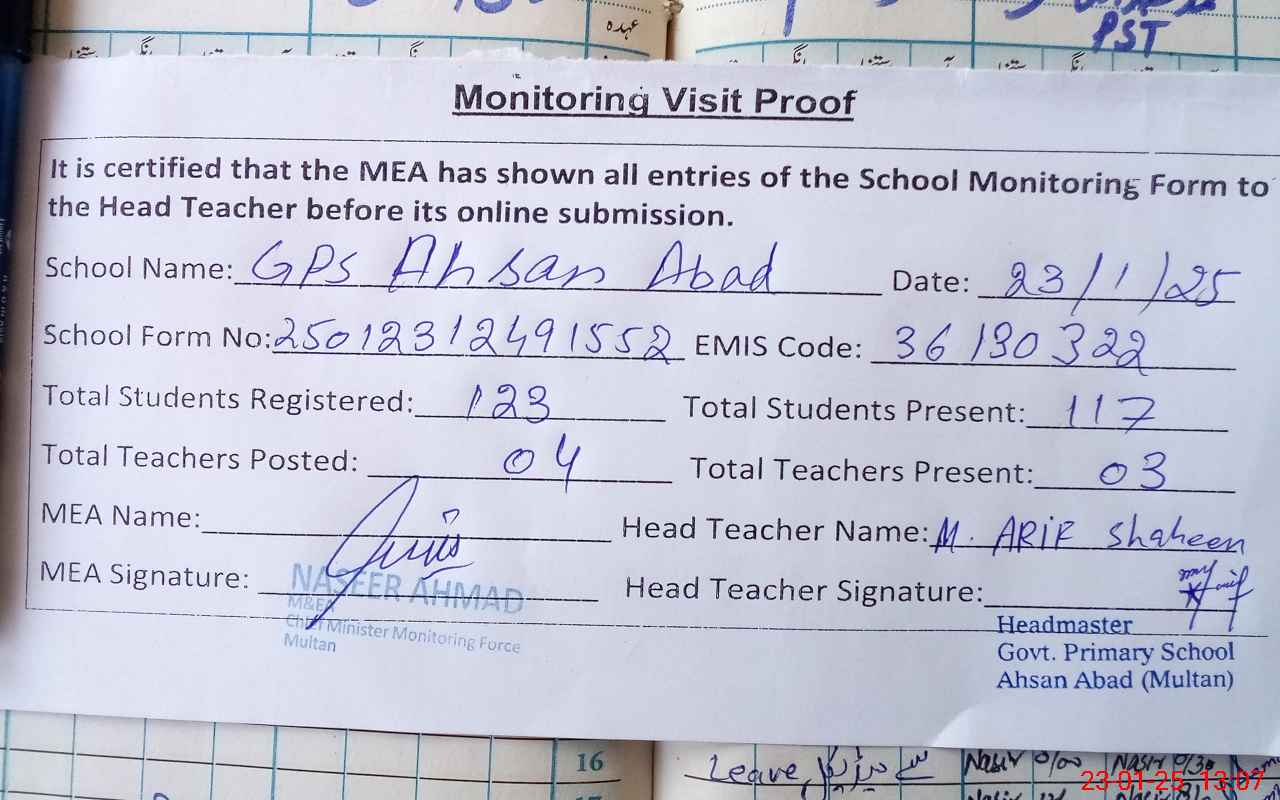 | EMIS Code: 36130322 | Name of School: GPS AHSAN ABAD | |||