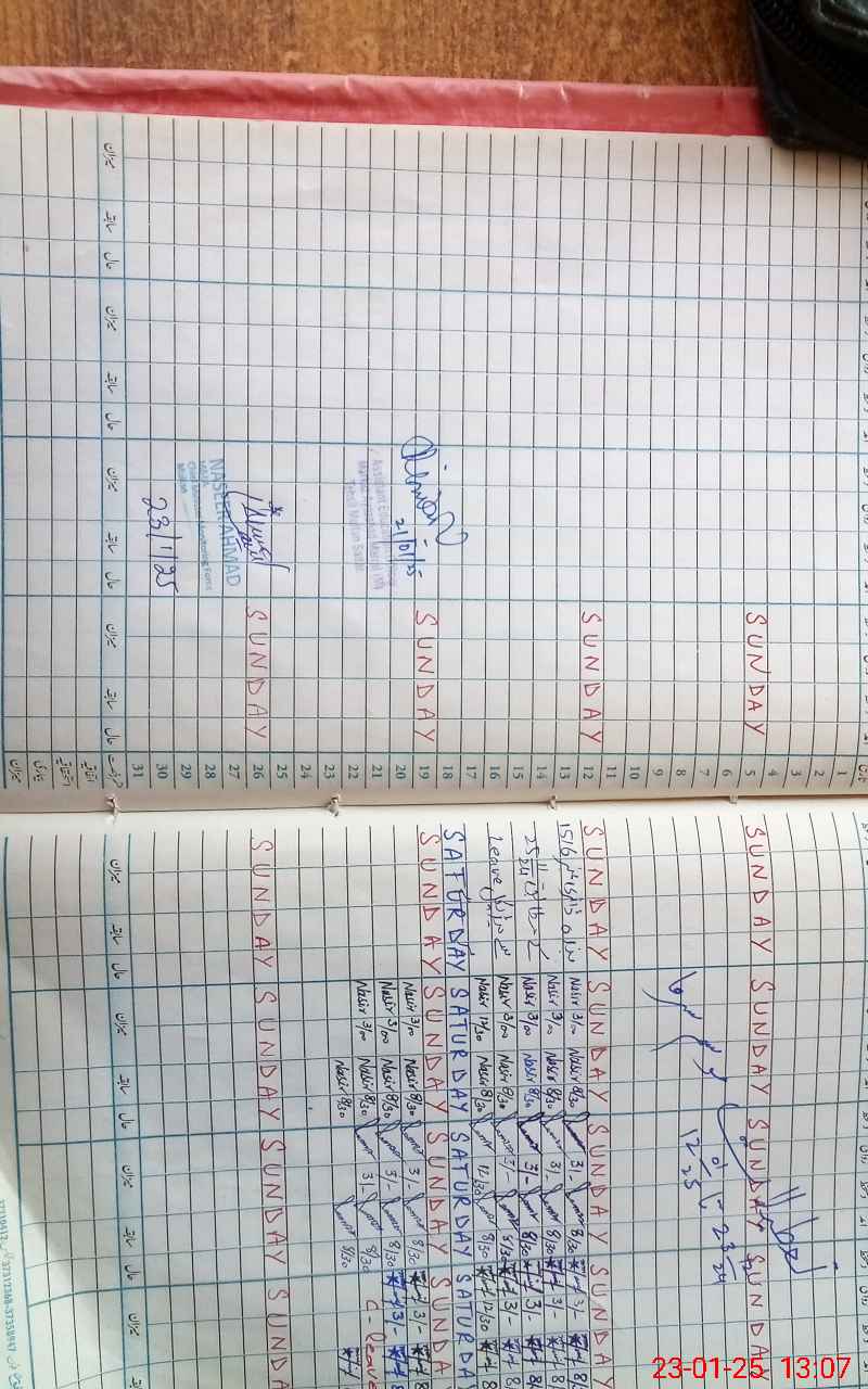| CNIC | Full Name | Designation | R/C | Absence During Last Calender Month |